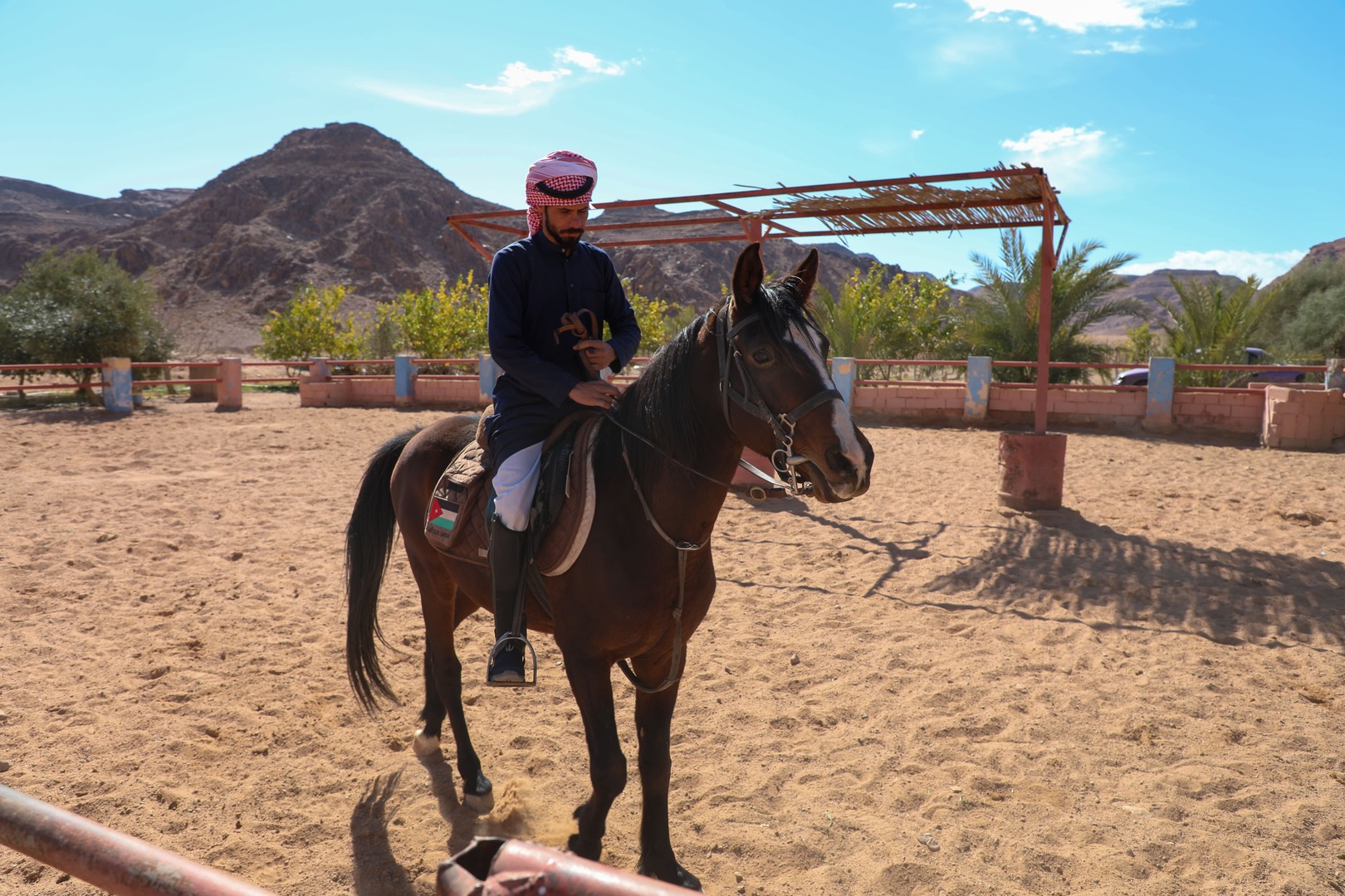 Atallah Al-Sweilhyeen is a passionate individual who owns a horse stable project in Wadi Rum, meticulously crafted for equestrian pursuits. As a pioneer in the region, he established the first stable tailored to foreigners and tourists, providing them with exhilarating desert safari trips on horseback. Atallah's unwavering dedication and enthusiasm for his project propelled him to achieve a significant milestone: becoming the first Jordanian to obtain certification as an Arabian horse riding guide in the southern region. His commitment to excellence and his love for horses shine through in every aspect of his venture, ensuring unforgettable experiences for riders exploring the majestic landscapes of Wadi Rum.