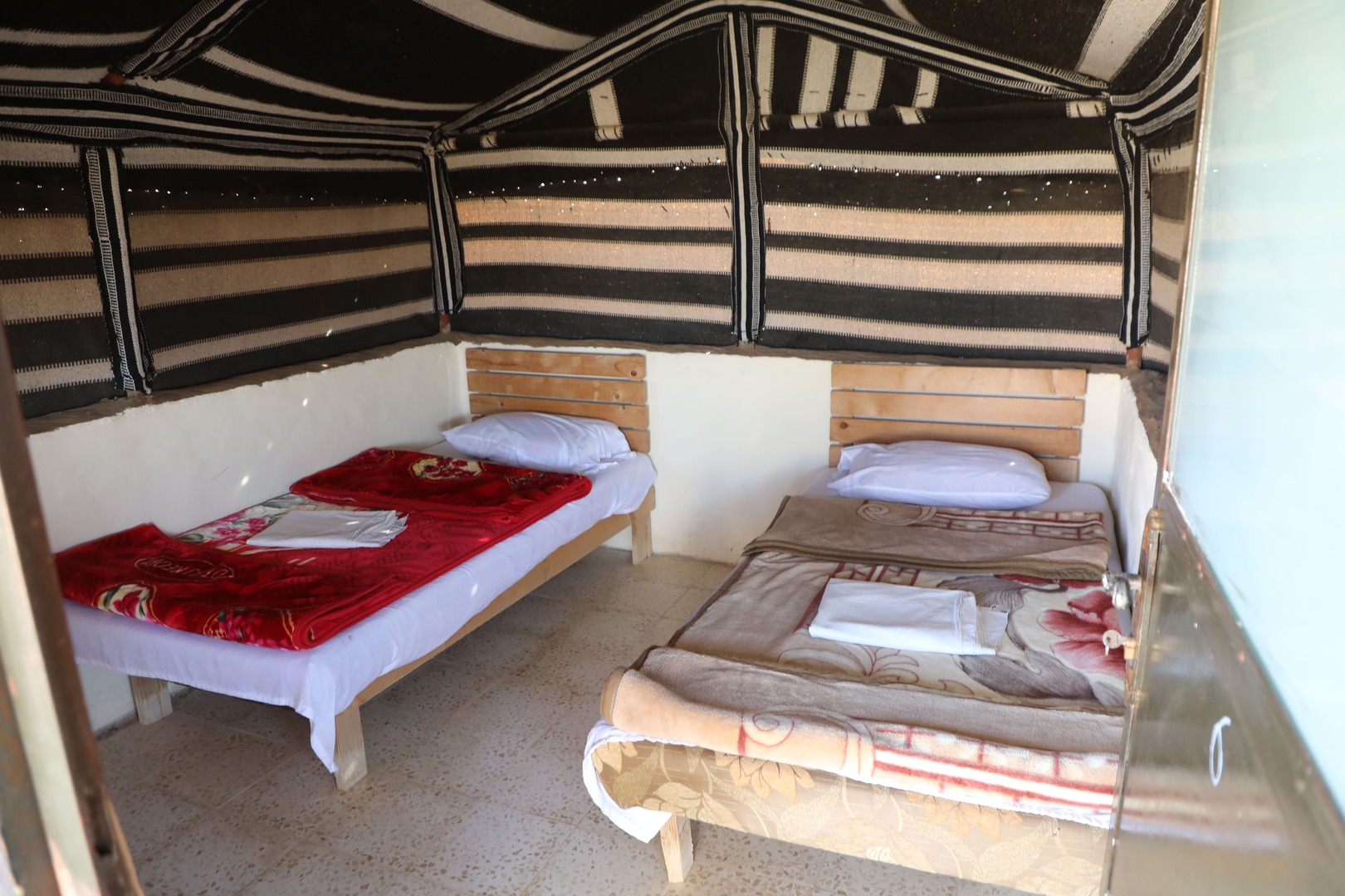 As you arrive at Nawatef Eco-Camp, you'll be greeted by the warm hospitality of the local staff, who are dedicated to ensuring your stay is both comfortable and enriching. Step into your simple yet cozy room, furnished with everything you need for a restful night's sleep, including comfortable mattresses, pillows, and blankets. The shared bathrooms are clean and well-maintained, providing modern amenities in harmony with the natural surroundings.