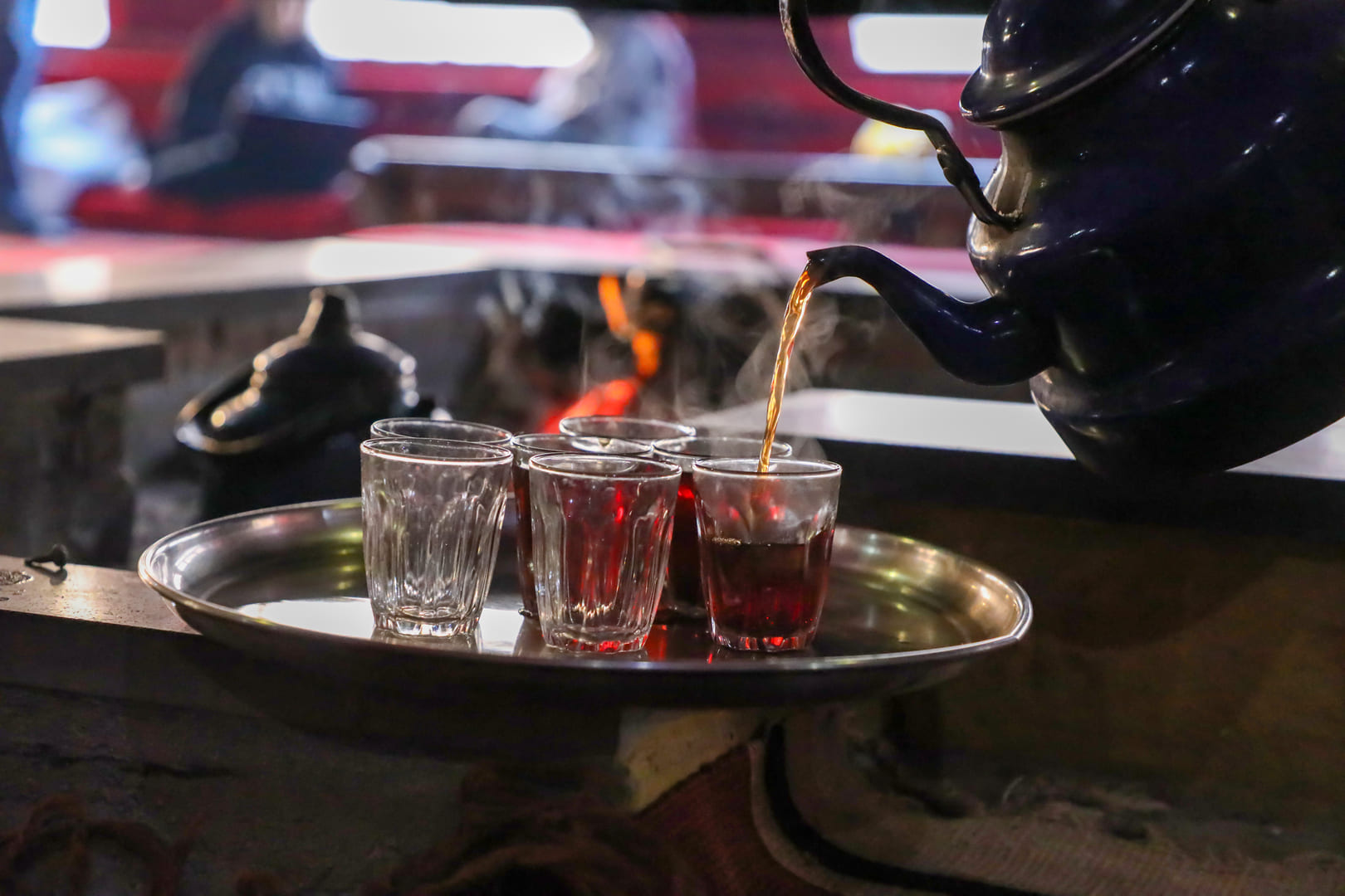 Witness the intricate preparation of Arabic coffee, a cherished ritual, as you relax in a traditional Arabic majlis, enveloped in the warmth coming from the nearby crackling fire.