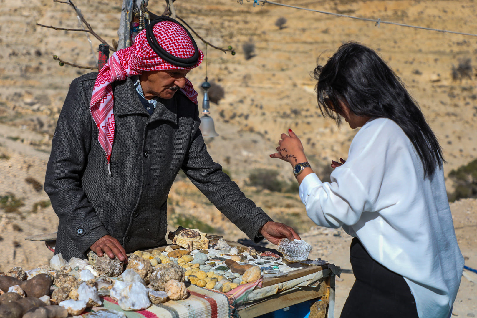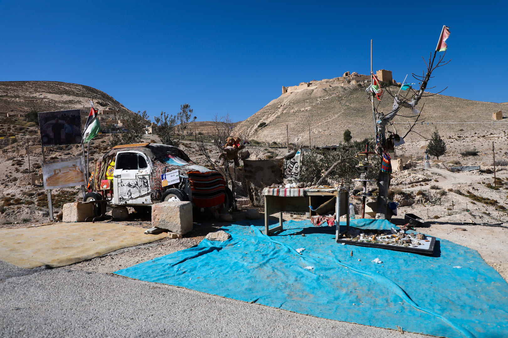 Adjacent to the car, Abu Ali has transformed a cave into a cozy area where guests can relax and unwind with tea and coffee. Here, he eagerly shares his knowledge of the area, offering insights into the castle's history and surrounding attractions.
