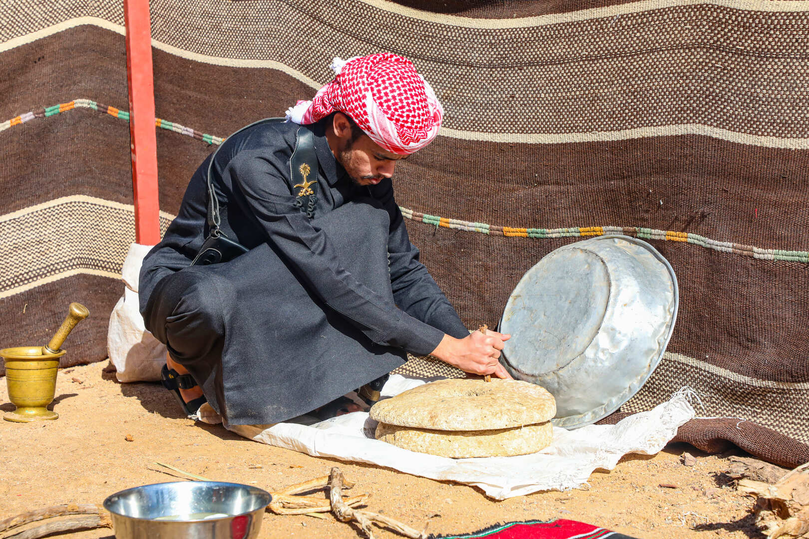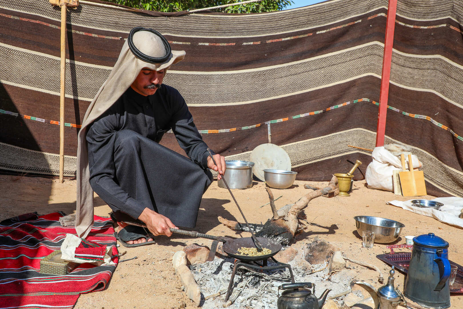 Ahmad Saedeen is a dedicated young man committed to offering visitors an authentic Bedouin life experience, where they can explore the rich traditions and customs of his community. With a profound passion for heritage preservation, Ahmad ensures that guests have the opportunity to not only witness but also actively participate in the making and tasting of traditional Bedouin dishes such as Mansaf and Rashouf for lunch, alongside mastering the art of brewing Arabic coffee. Under Ahmad's guidance, visitors will discover the essence of Bedouin culture and create unforgettable memories.