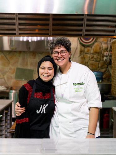Wafaa Massad and her partner, Seline, are the dynamic duo behind The Jordanian Kitchen, where culinary dreams meet cultural immersion. Their culinary journey began with a vision to create a kitchen where visitors could not only learn about Jordanian food and culture but also experience it firsthand through cooking. Inspired by recipes passed down through generations of Jordanian and Palestinian mothers, they set out to create an authentic culinary experience like no other. Wafaa, with her warm and welcoming demeanor, brings a wealth of knowledge and expertise to every cooking class. As an experienced teacher, she expertly guides participants through the intricacies of Jordanian cooking, sharing insights into spices, traditional techniques, and cultural significance along the way. Her infectious enthusiasm and good humor create an atmosphere of enjoyment, ensuring that each class is a memorable and enjoyable experience for all.