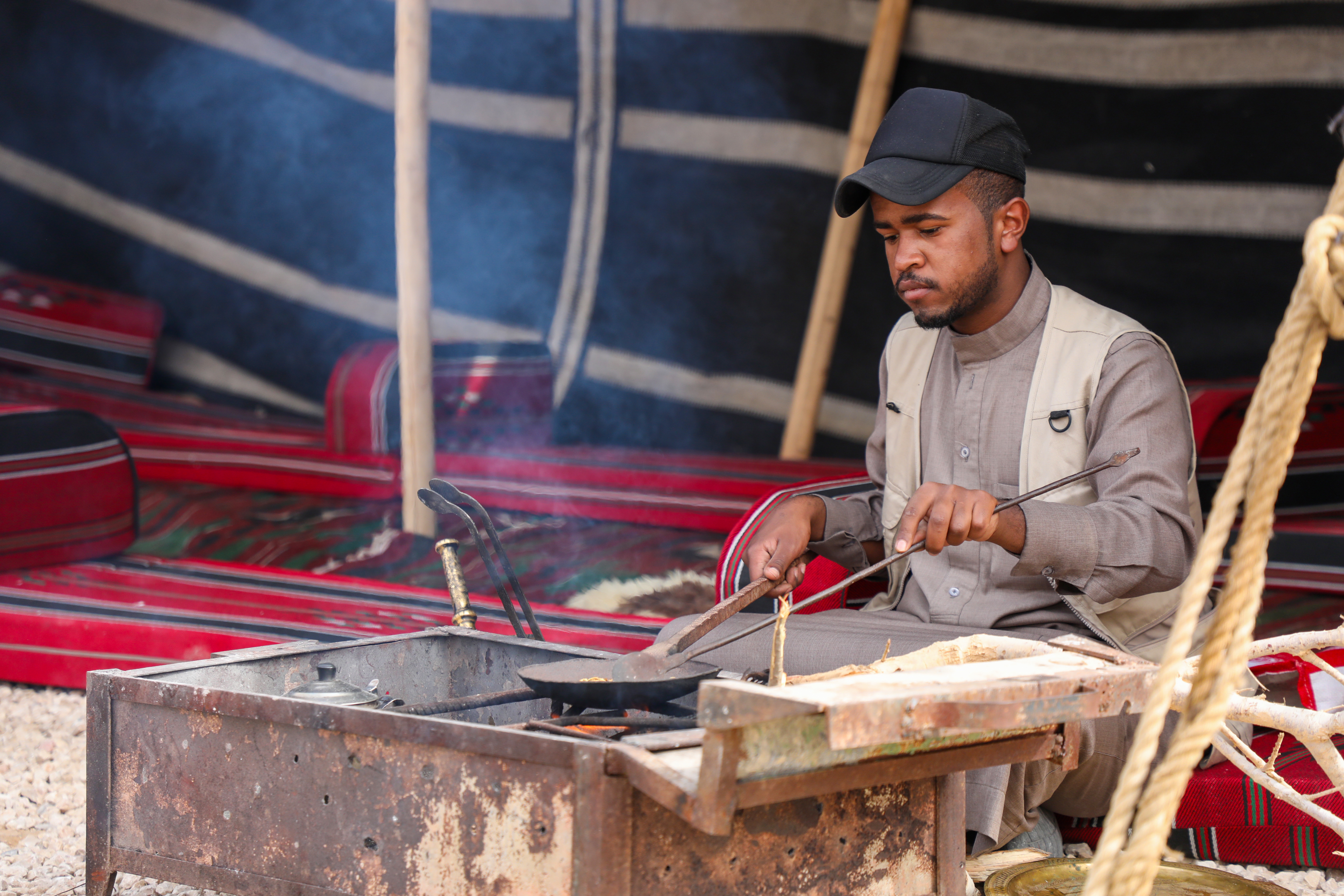 Guests begin their day by engaging in the art of preparing traditional Bedouin breakfast dishes, including the savory delights of Lazageat, Mardouda, Rashoof, and Bakila. Delight your senses as you actively participate in hands-on experiences, from baking Shrak bread on open fires to churning milk and crafting the perfect cup of Arabic coffee.
