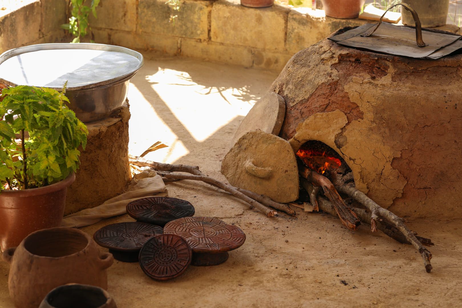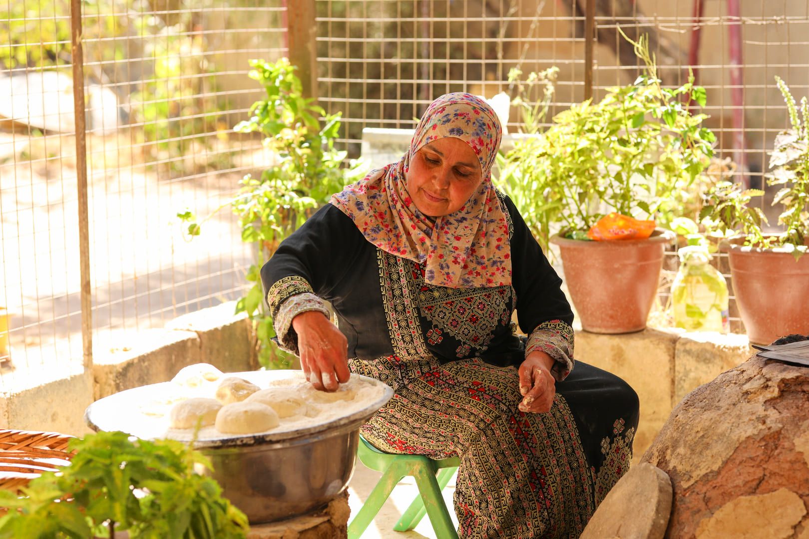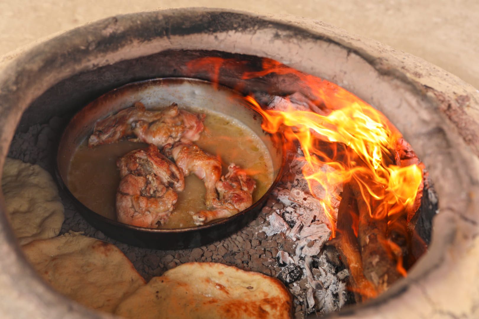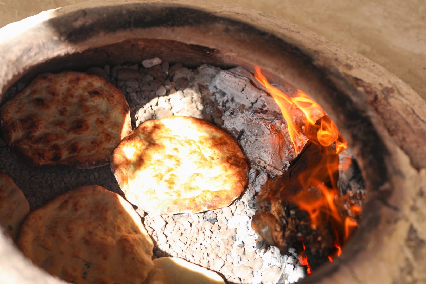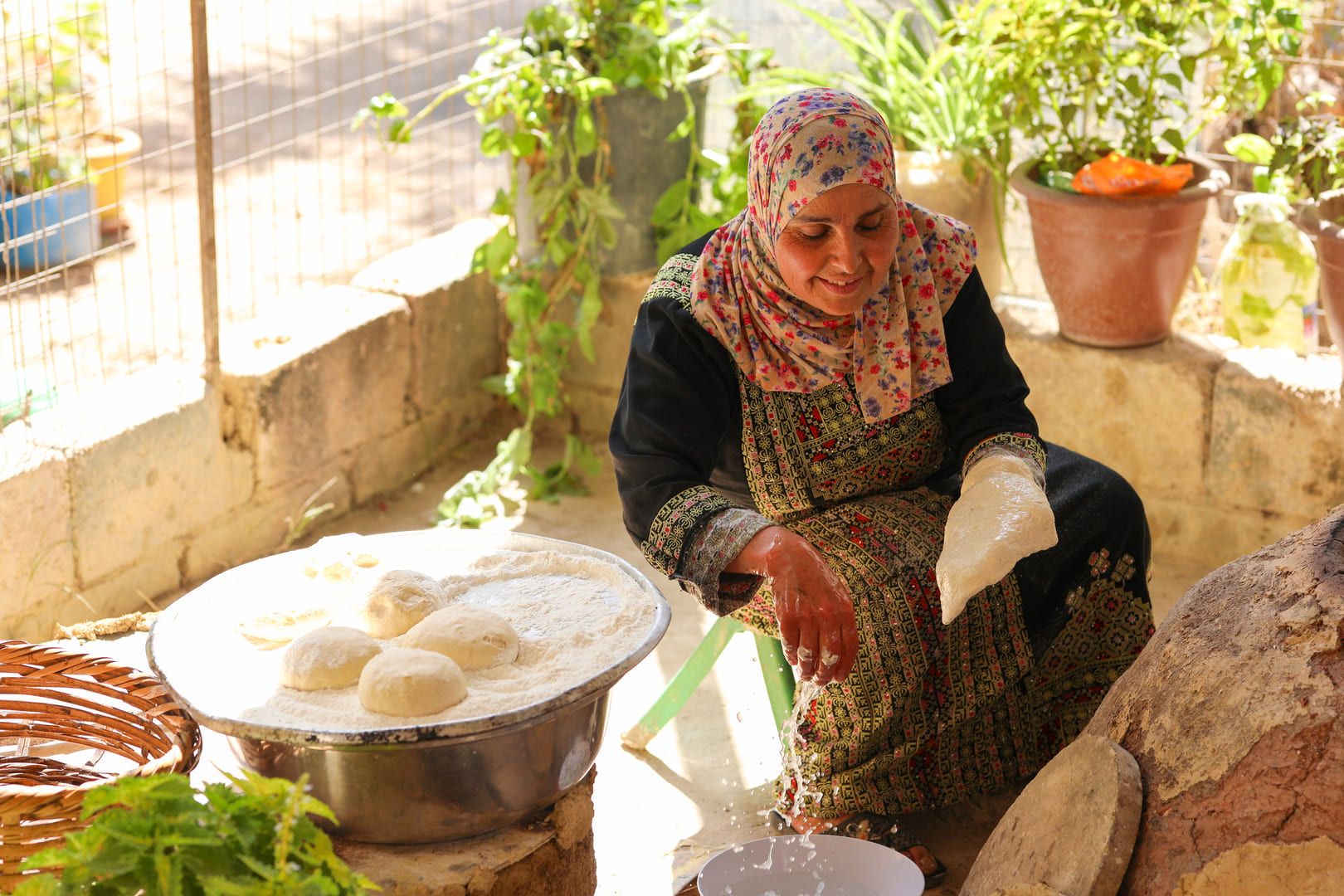 The journey begins in the backyard of a traditional - by looks and heart - house in Ajloun, where tens of handmade clay Taboun ovens where fashioned by your host - "Khadejah". Following your welcoming cup of warm tea, you will be given the opportunity to knead the dough and use the Taboun clay ovens to bake your own bread - that will later on accompany a heart and belly warming traditional meal.