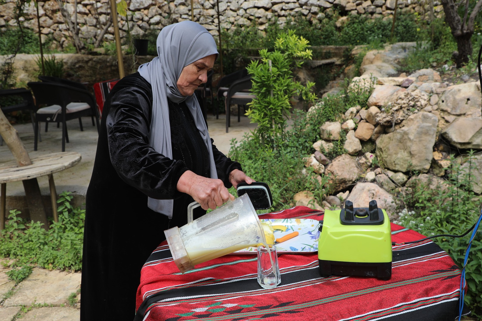 Sukina, the visionary behind Um Malek's guesthouse, began her journey into hospitality after experiencing success with her homemade local products such as olive oil, olives, dairy products, traditional foods, and handmade soap. It all began when visitors, drawn by the warmth of Sukina's hospitality and the charming ambiance of her porch covered with lemon trees, began stopping by to purchase her goods. Inspired by the growing interest and eagerness to share the beauty of her surroundings with others, Sukina made the bold decision to transform her home into a guesthouse. Today, Um Malek's guesthouse stands as a testament to her dedication to providing authentic Jordanian experiences and locally sourced products to visitors from near and far. Driven by a desire to expand her offerings and reach a wider audience, Sukina is committed to enhancing her kitchen facilities and increasing exposure for her guesthouse.