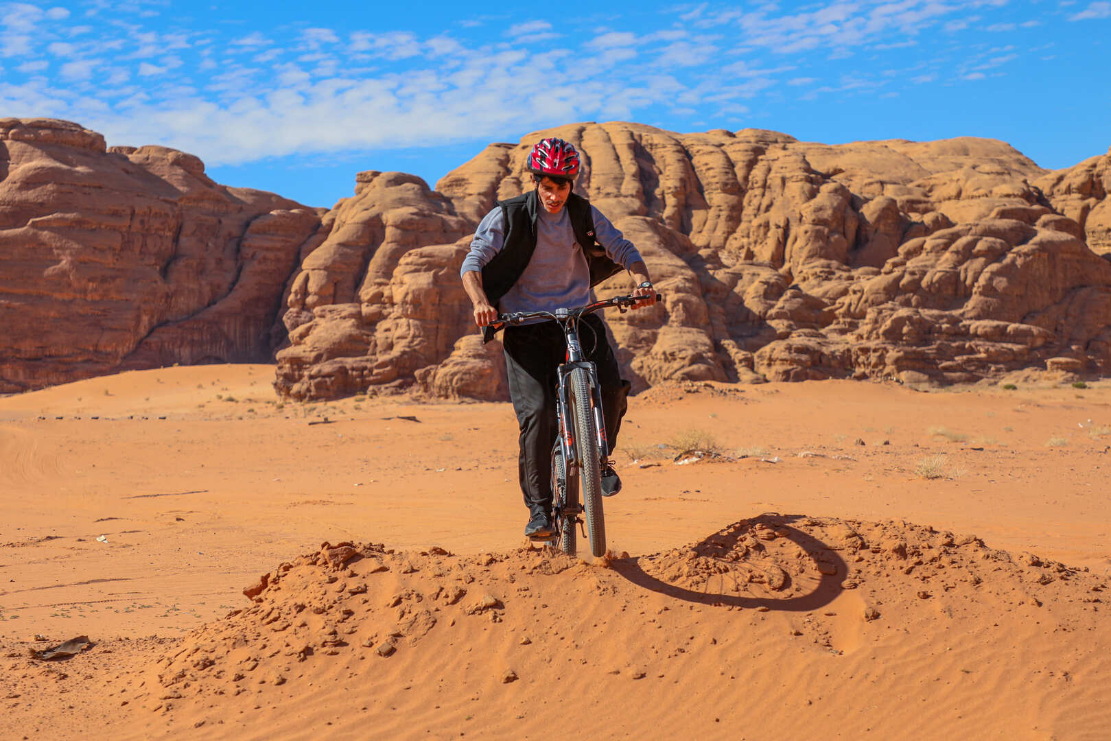 Join Mohammed for a unique cycling experience in Wadi Rum, promising unforgettable memories!