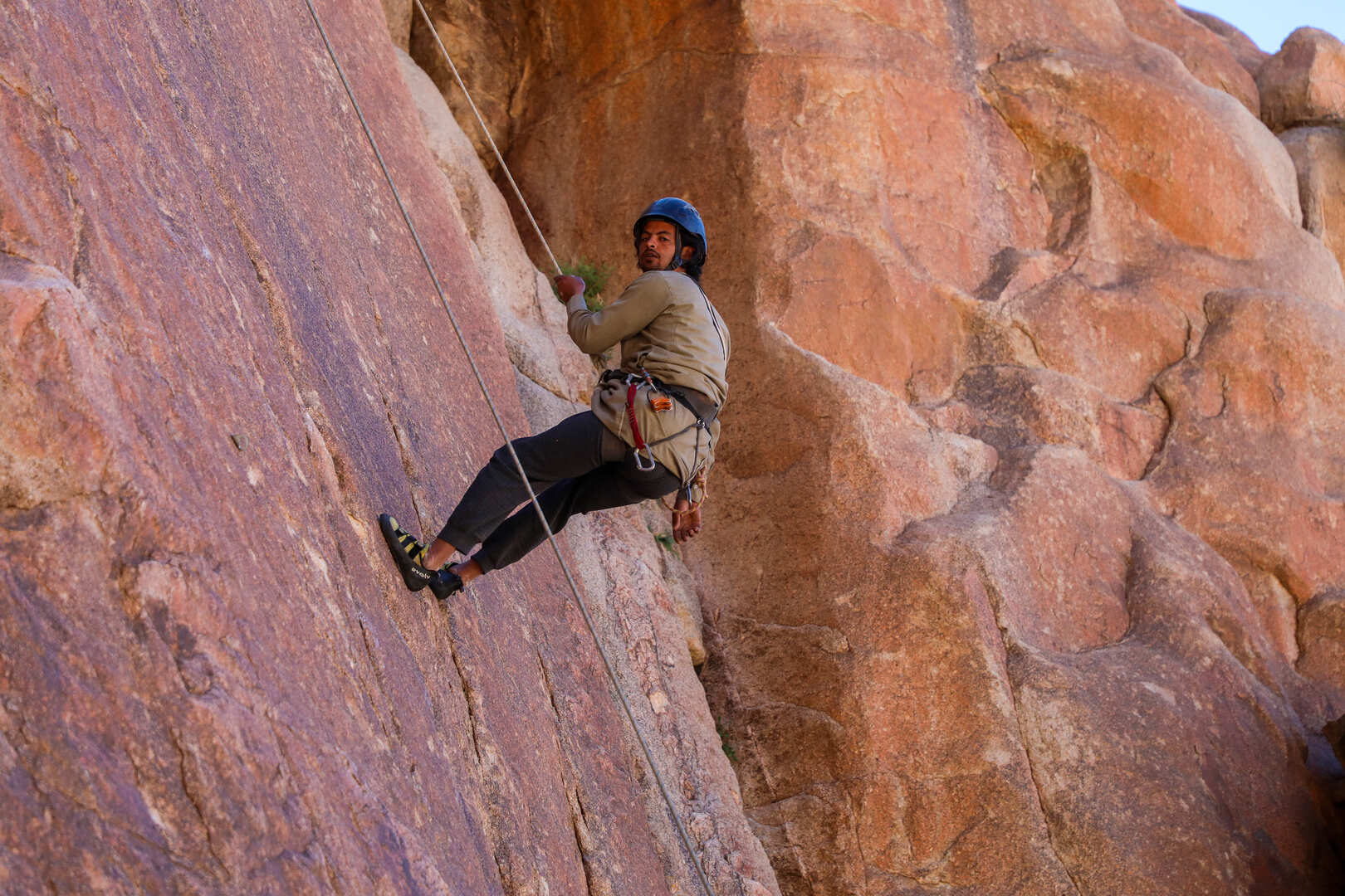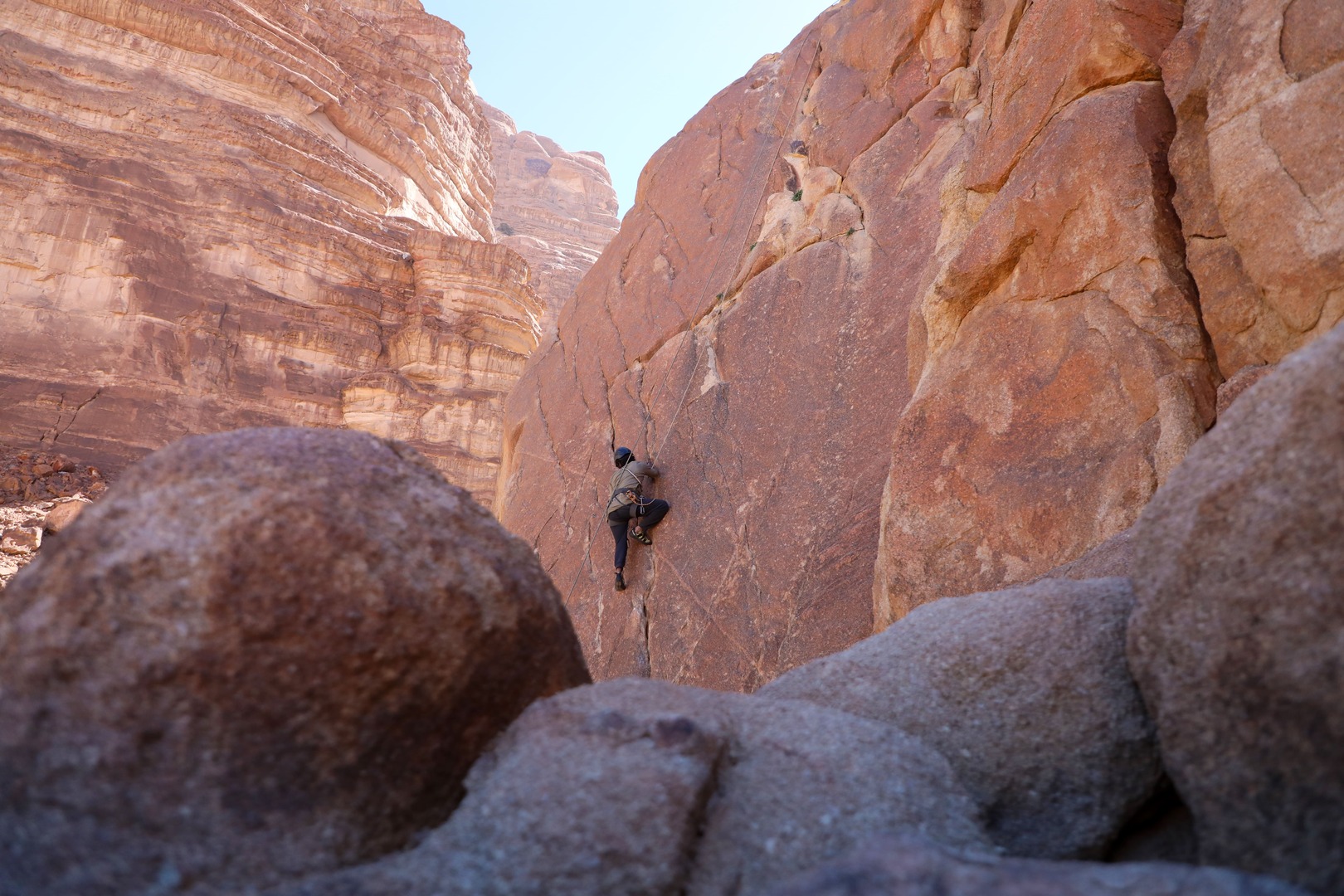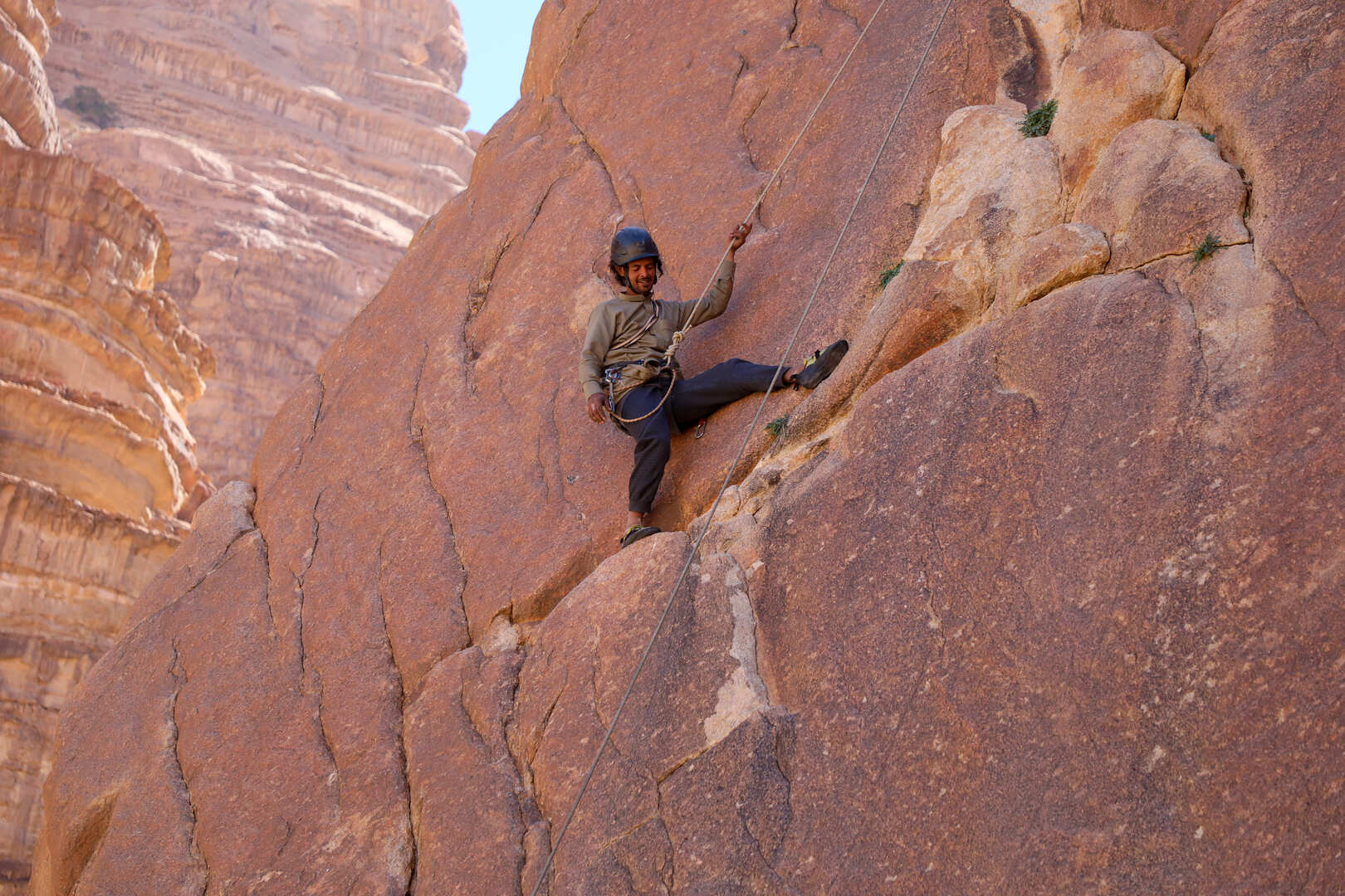 Get ready for an exhilarating rock climbing adventure in Wadi Rum with Salameh as your expert guide, ensuring both excitement and safety every step of the way.