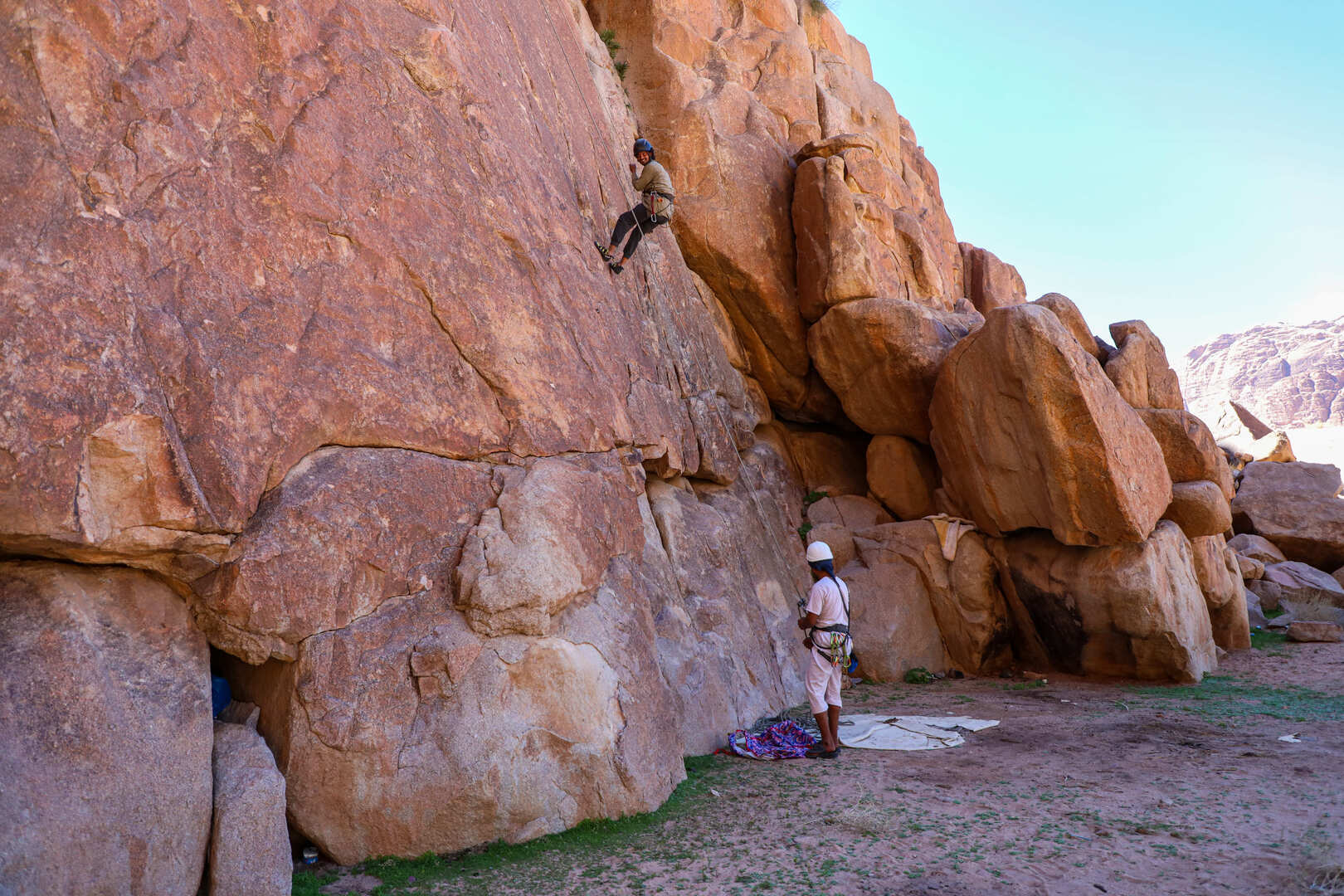 Your journey begins with a thrilling jeep tour through the desert landscape of Wadi Rum. Upon reaching the designated climbing site, Salameh presents you with a range of options tailored to your preferences. Whether you seek a full-day into the world of rock climbing, a half-day escapade, or a shorter session to fit your schedule, Salameh ensures a personalised experience that meets your needs.