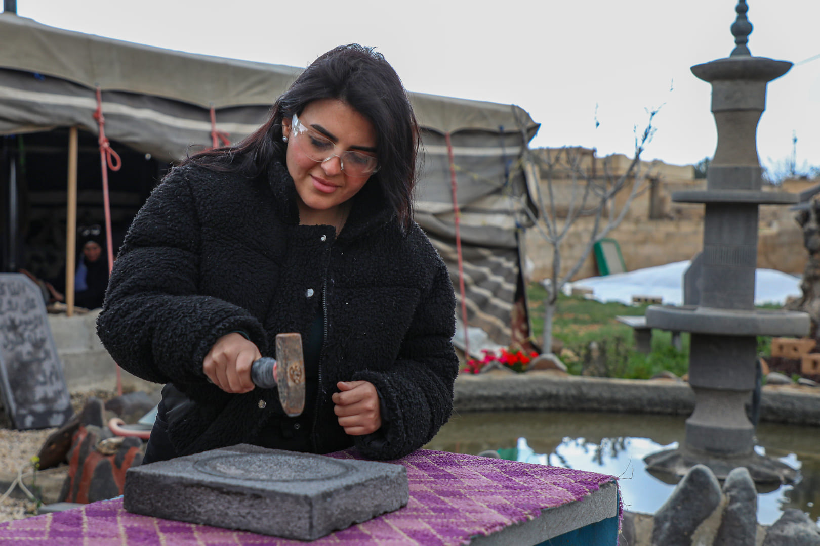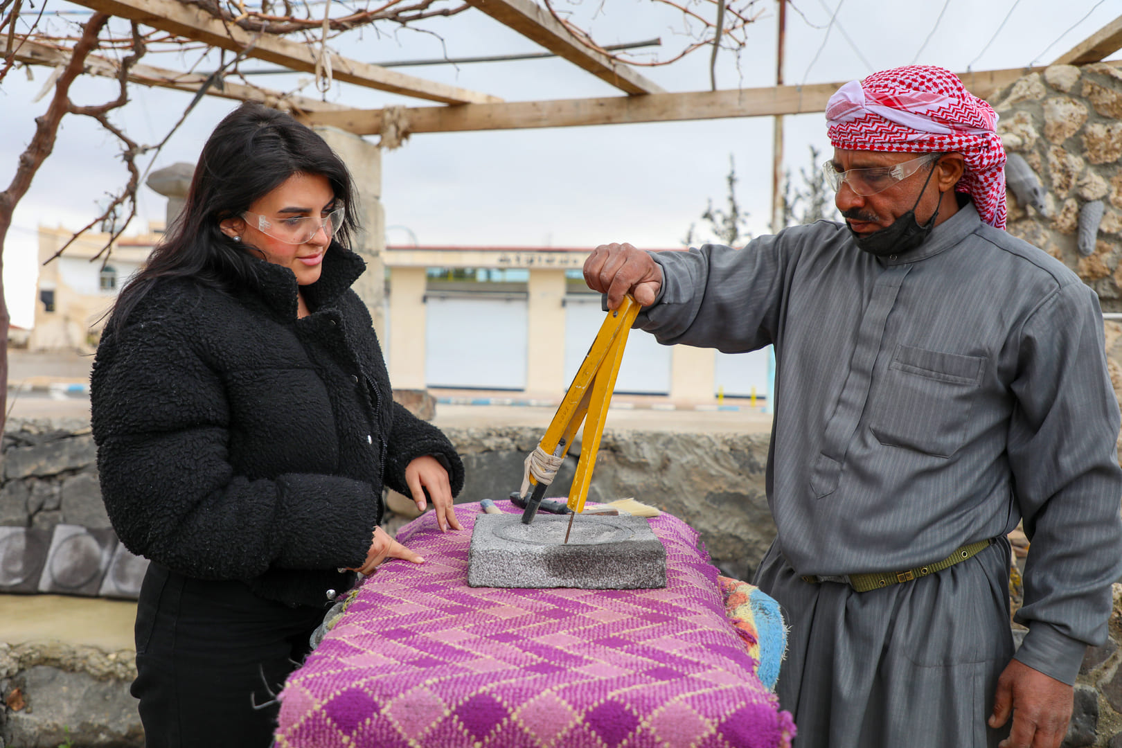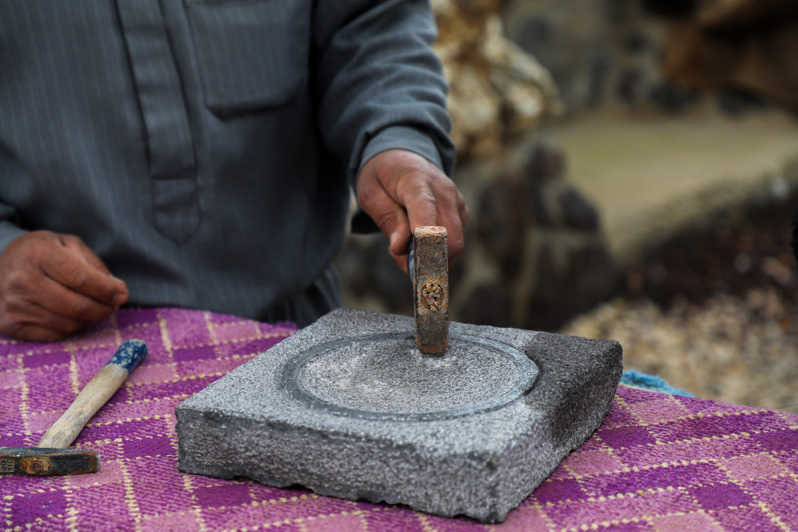 Step into the world of Mahmoud's stone sculpting workshop, set amidst the scenic beauty of Um al Jamal. As you enter this realm of creativity, you'll be greeted by the calming ambiance of craftsmanship and artistic expertise.