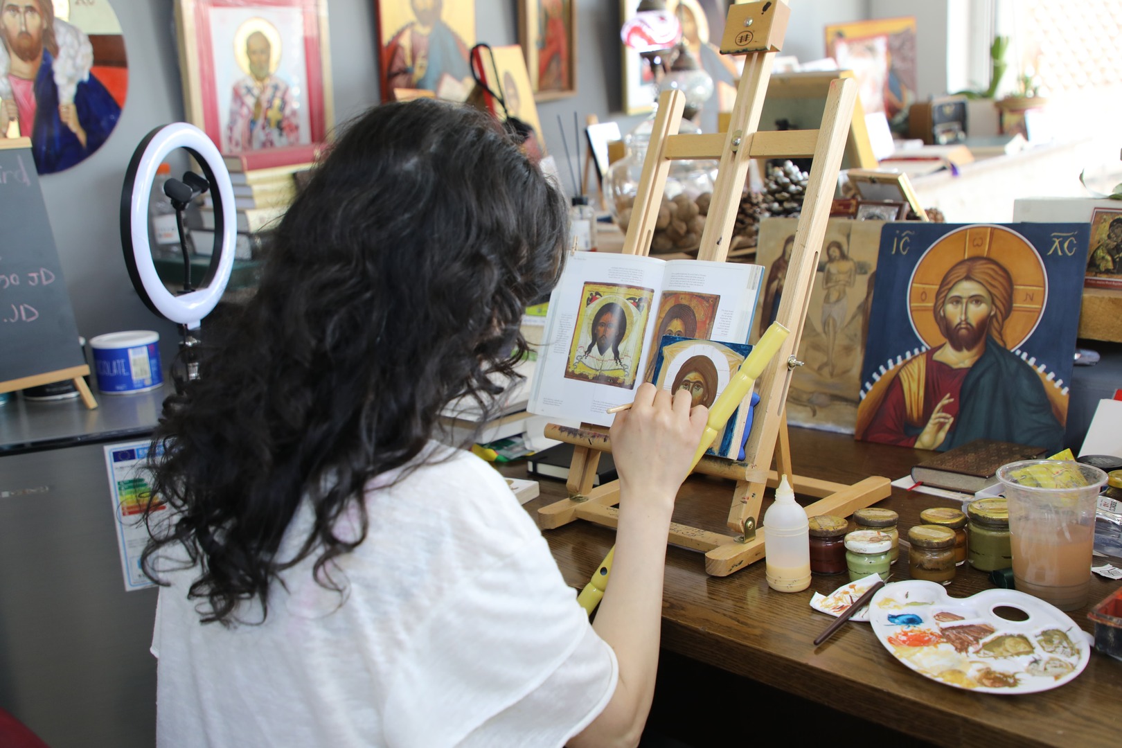 Step into the serene sanctuary of Arts, where every visit promises a journey into the world of sacred iconography. As you enter Rawan's gallery, you're greeted by a rich collection of icons and artworks, each with its own unique story and symbolism. Rawan herself guides you through the history and significance of each piece, offering insights into religious scriptures and the intricate techniques behind their creation.